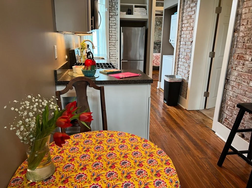 Our first floor AirBnb sits on a quiet residential street on the edge of downtown Louisville and a brick patio. Five blocks away from Market street, it sleeps four.